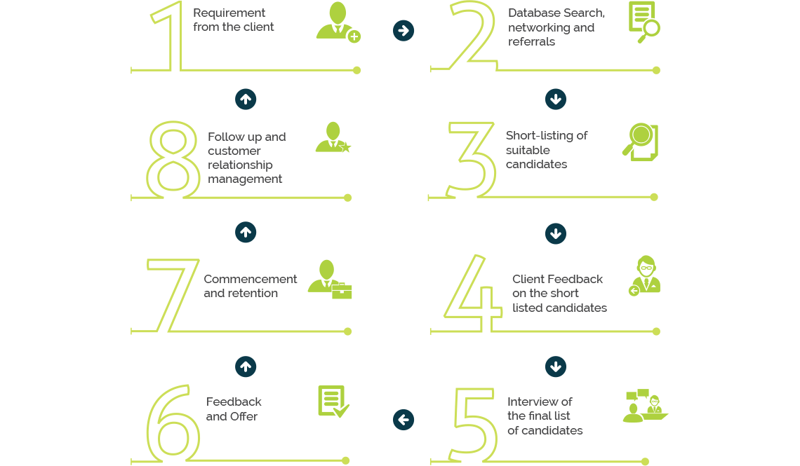 The recruitment process is an iterative process of searching for potential candidates, short-listing them and interviewing them to complete the recruitment cycle.